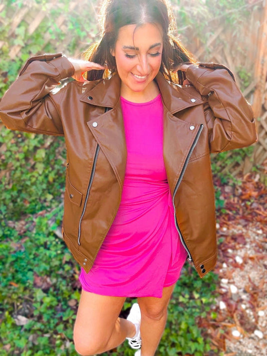 Oversized Vegan Leather Biker Jacket